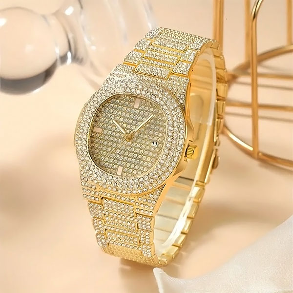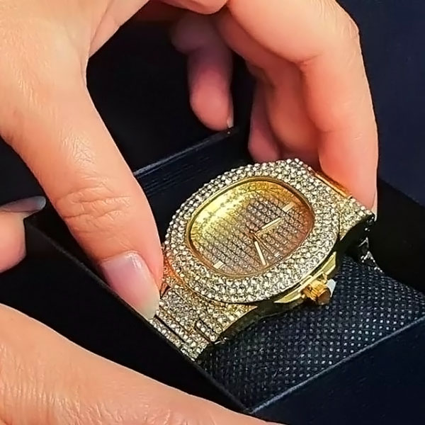 Χιλιάδες αστραφτερά κρύσταλλα μετατρέπουν αυτό το ρολόι σε εντυπωσιακό. Δεν είναι απλώς ένα ρολόι – είναι μια τολμηρή δήλωση πολυτέλειας και κομψότητας.