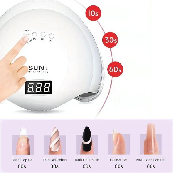 Με 3 ρυθμίσεις χρονοδιακόπτη (10s, 30s, 60s), μπορείτε να προσαρμόσετε τη διαδικασία στεγνώματος ανάλογα με τον τύπο του τζελ και τις προσωπικές σας ανάγκες. Ο έξυπνος αισθητήρας ενεργοποιείται αυτόματα όταν τοποθετείτε τα χέρια ή τα πόδια σας κάτω από τη λάμπα, εξασφαλίζοντας μια εμπειρία χωρίς κόπο κάθε φορά.